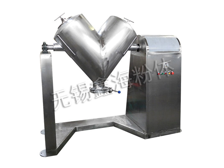 V型混合机是一种高精度的混合设备,它适用于化工、食品、医药、饲料、陶瓷、冶金等行业的粉料或颗料状物料的混和。该机结构合理、简单、操作密闭,进出料方便,(人工或真空加料)筒体采用不锈钢材料制作便于清洗,是企业的基础设备之一。该机自转均有一套电机及摆线针轮减速机来完成,混合速度快,对比重悬殊,混配比较大的物料混合适合。本机物料接触部分均为不锈钢制造。